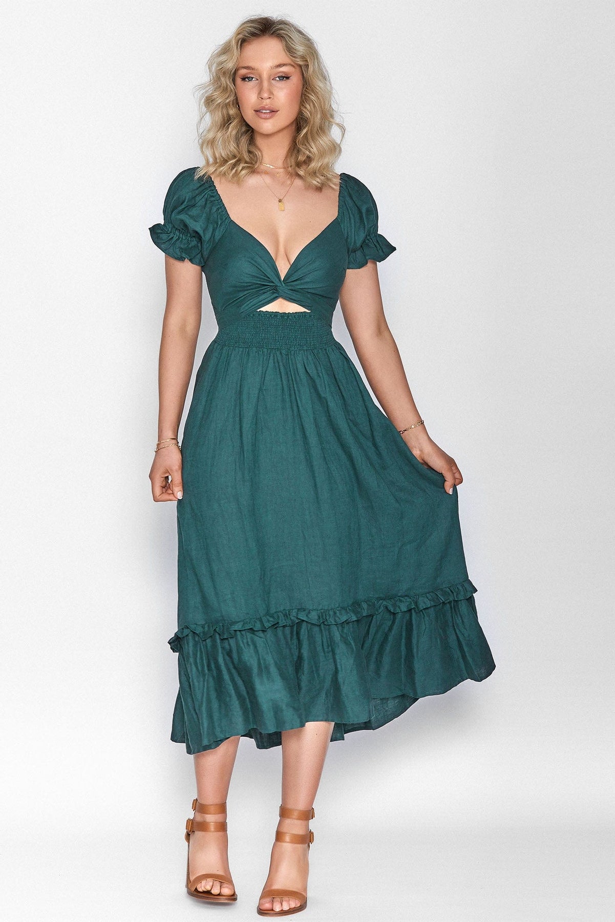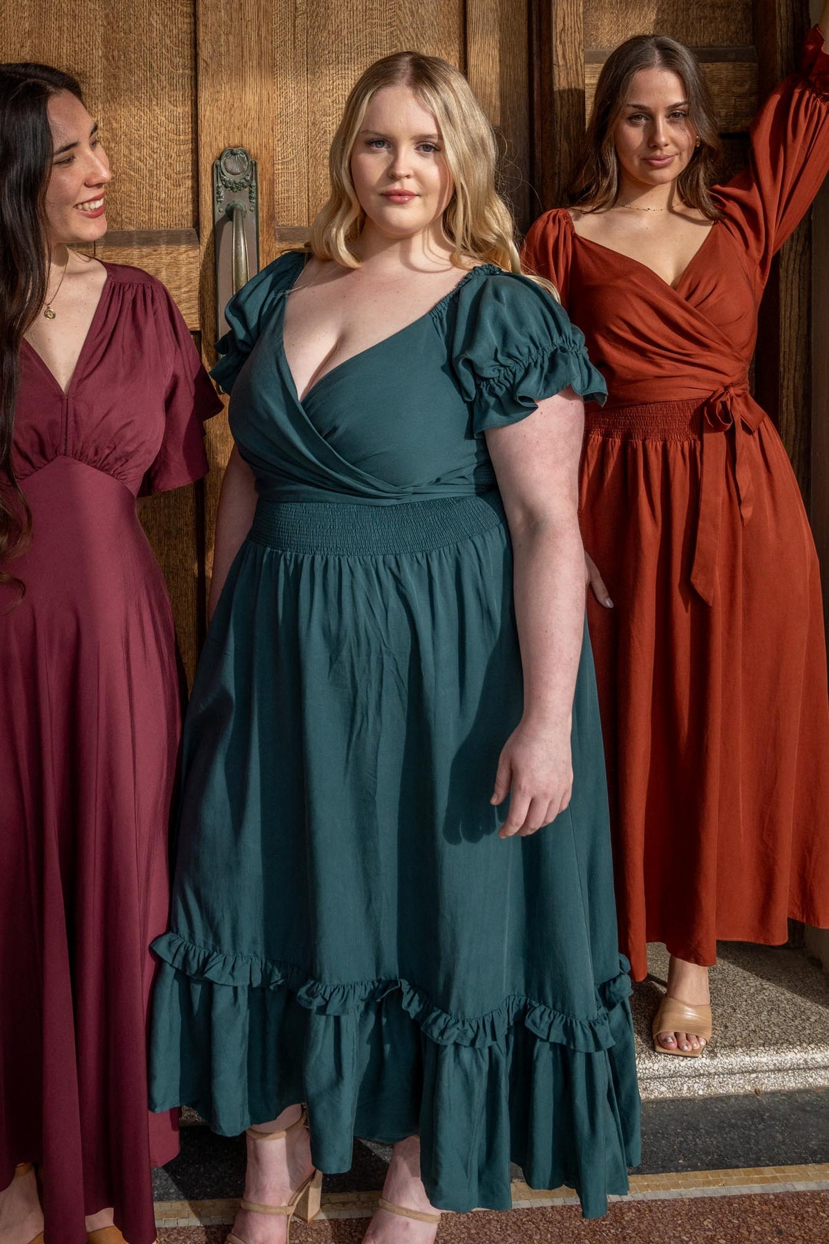 Our Best seller now in silky soft Tencel. Improved Bust fit. Wrap bodice can be wrapped, twisted or tied as you wish! Gorgeous puffy sleeves with cuff ruffles and elasticated shoulder. Elasticated shirring for the perfect fit and beautiful A-line skirt that sits full length on shorter girls and midi on taller girls.
