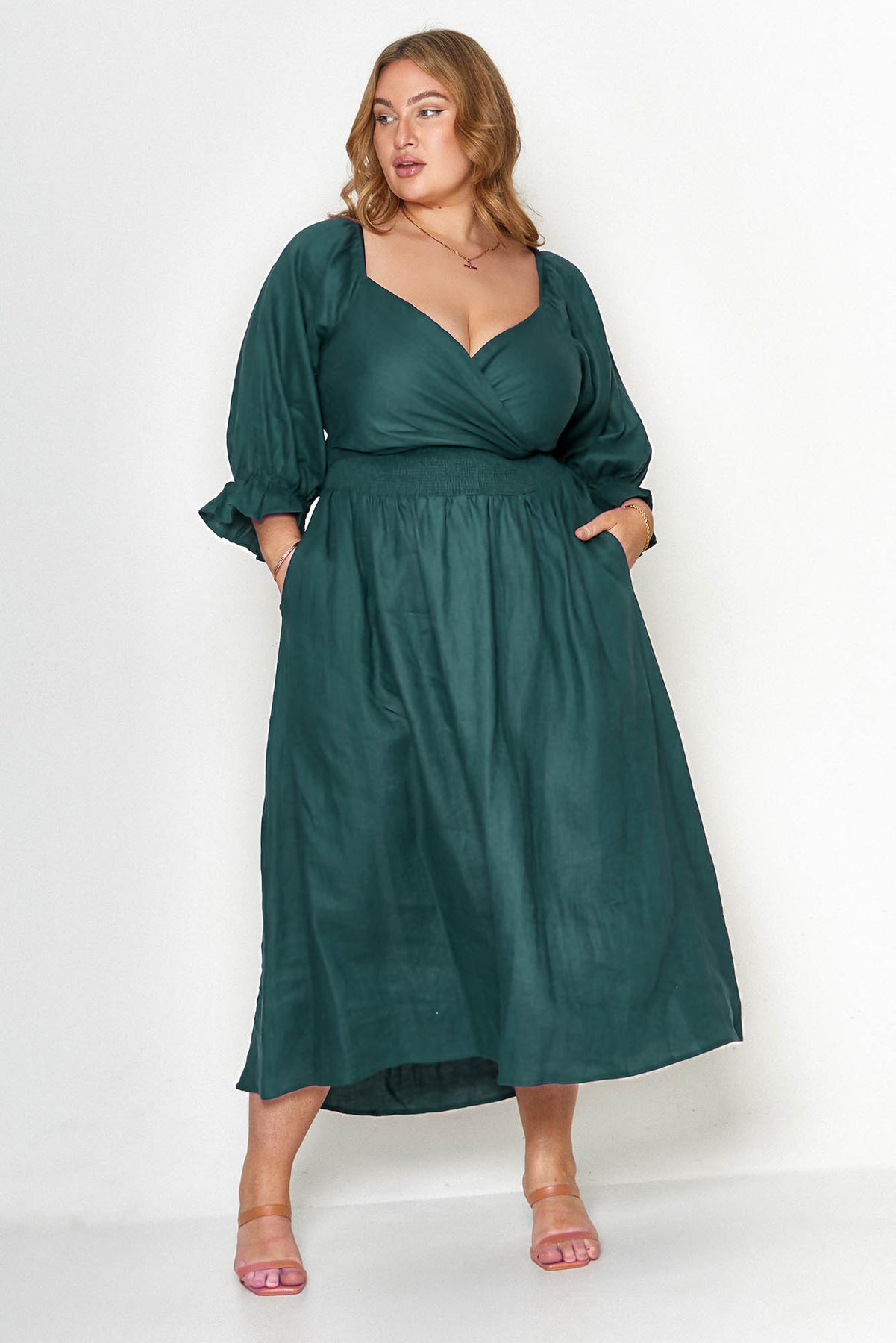 Our Best seller now in silky soft Tencel. Improved Bust fit. Wrap bodice can be wrapped, twisted or tied as you wish! Gorgeous puffy sleeves with cuff ruffles and elasticated shoulder. Elasticated shirring for the perfect fit and beautiful A-line skirt that sits full length on shorter girls and midi on taller girls. The perfect wedding guest or events dress. Beautiful for wine tours and garden parties!