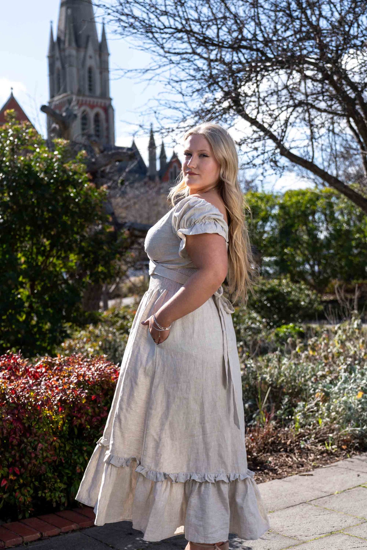 Live out your cottage core dreams in our Marianne Dress! Wrap bodice can be wrapped, twisted or tied as you wish! Gorgeous puffy sleeves with cuff ruffles and elasticated shoulder. Elasticated shirring for the perfect fit and beautiful A-line skirt that sits full length on shorter girls and midi on taller girls.