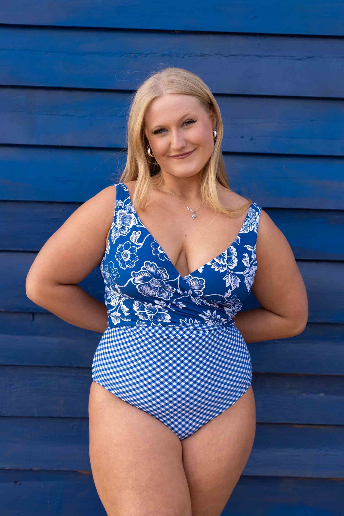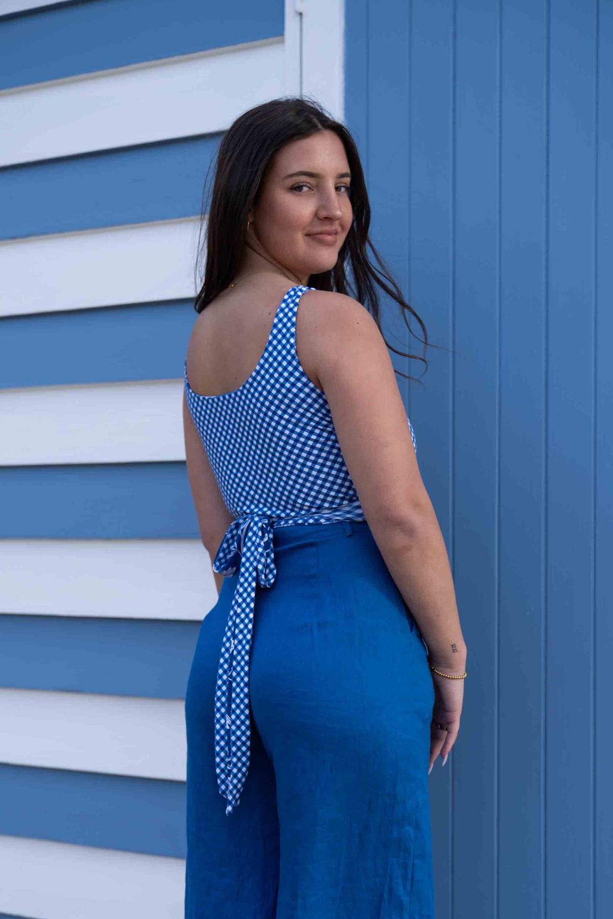 Lola Reversible Bikini Top - Blue Gingham / Chintz